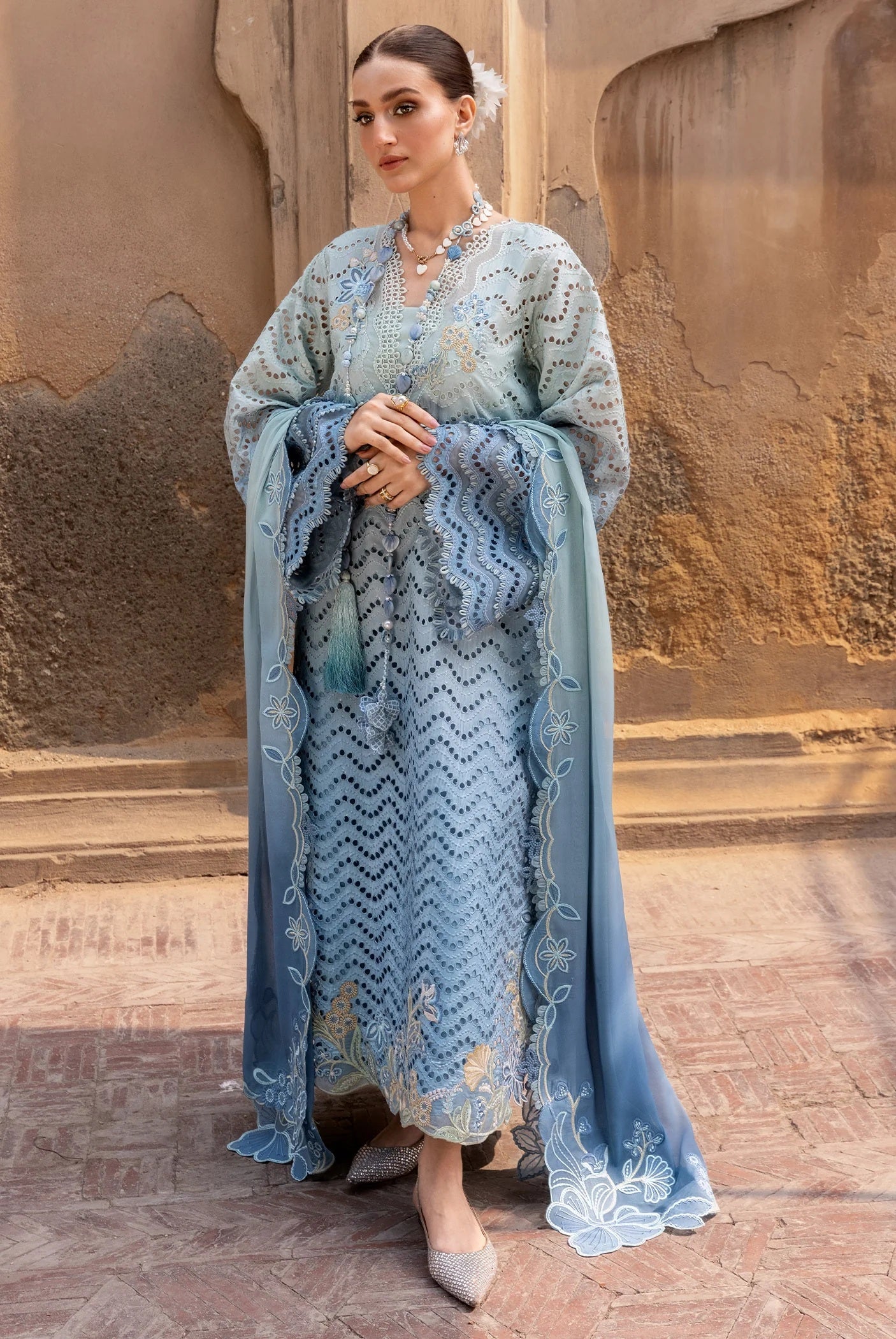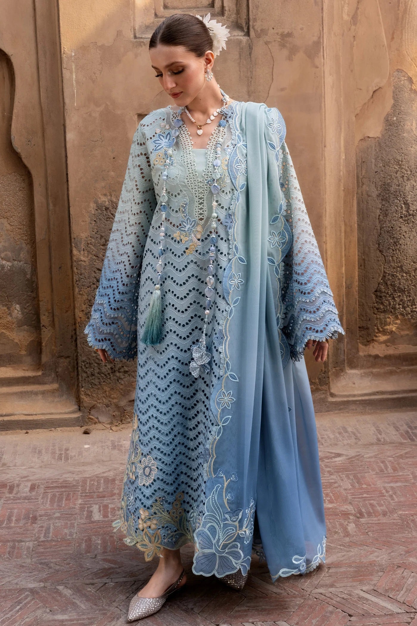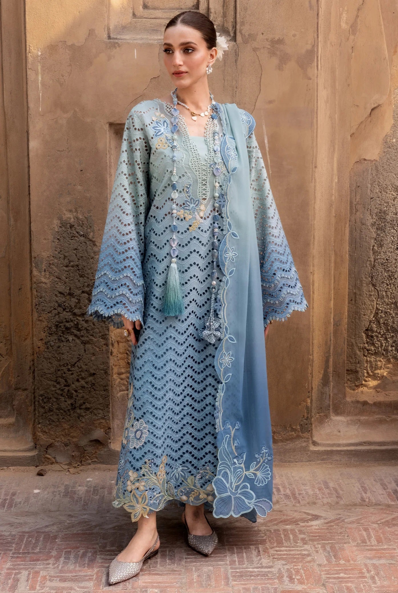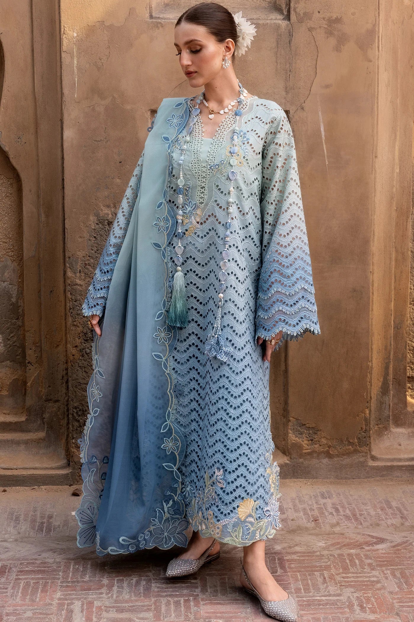 Elevate your wardrobe with this exquisite Crimson luxury lawn collection. The OMBRE LOVE design features intricate embroidery that transitions beautifully across the fabric, creating a sophisticated gradient effect. This unstitched 3-piece set includes premium quality lawn material perfect for warm weather wear. The delicate embroidered details showcase masterful craftsmanship, making it ideal for casual gatherings, festive occasions, or everyday elegance. The ombre technique adds depth and visual interest, while the luxurious lawn fabric ensures comfort and breathability. Unstitched format allows you to customize the fit and style according to your preferences. Perfect for those who appreciate fine embroidery work and timeless design. Transform this into your signature piece with tailoring that suits your unique style.