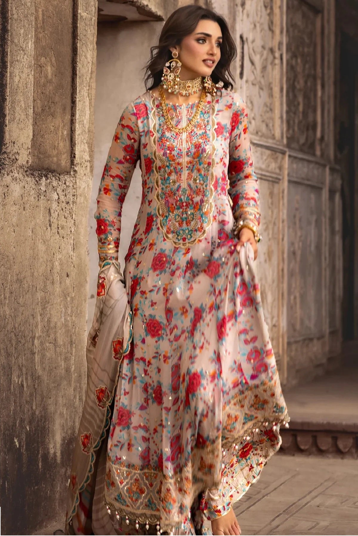Experience elegance with the Charizma Vasal 25, a luxury chiffon 3-piece unstitched set. Featuring intricate embroidery, this fabric allows you to tailor a personalized outfit that blends comfort with sophistication. Perfect for special occasions, it offers both style and versatility for your wardrobe.