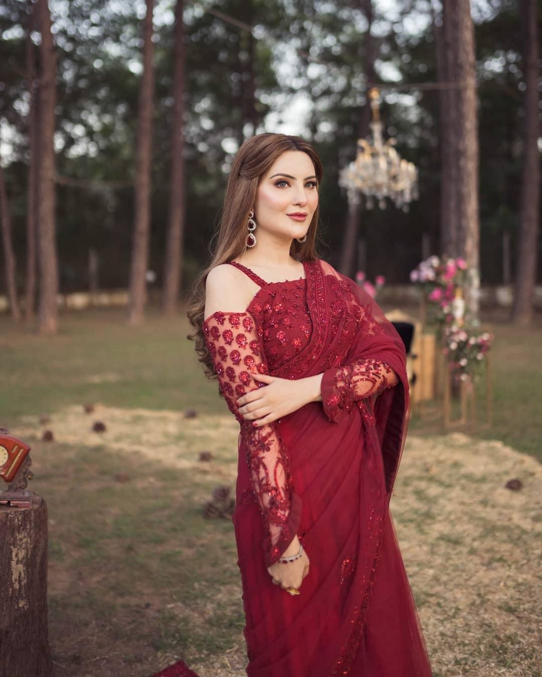 Shazia Kiyani Net Embroidered Saree Unstitched RED GLAM