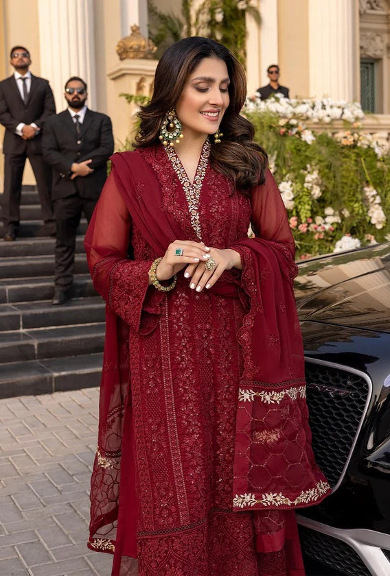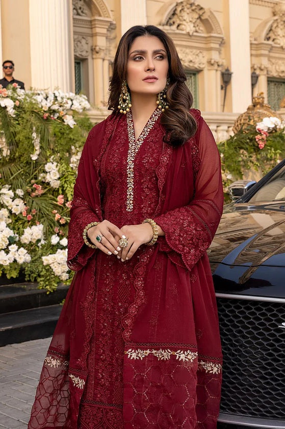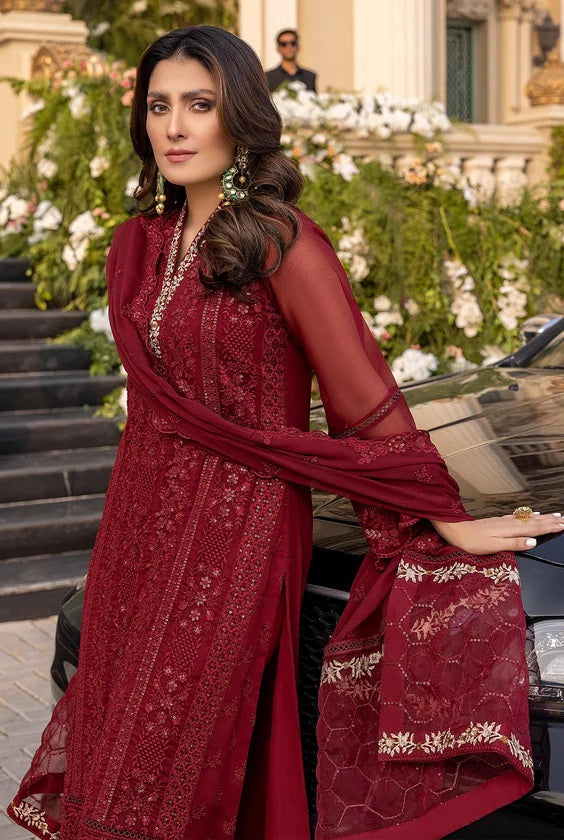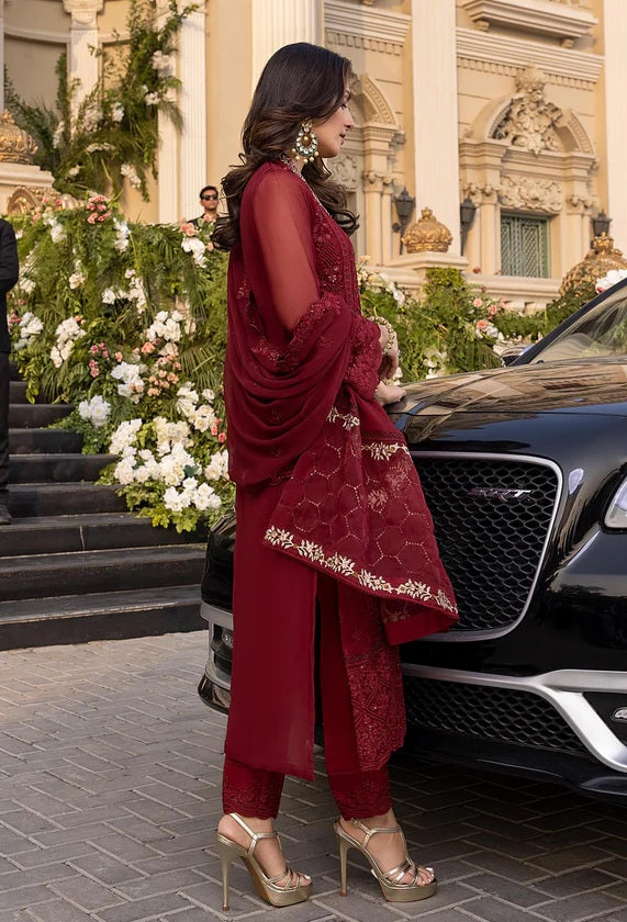 Azure Vibrant Ruby - Luxury Chiffon Embroidered Unstitched 3 Piece