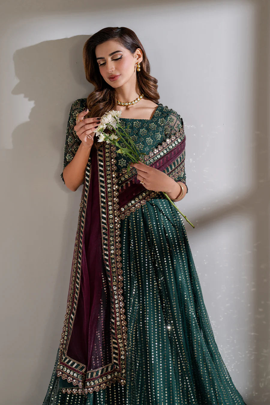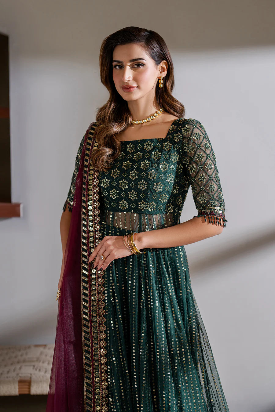 Iznik Meraki Luxury Embroidered Dark Green Luxury 3 Pc Unstitched Net Maxi D-07