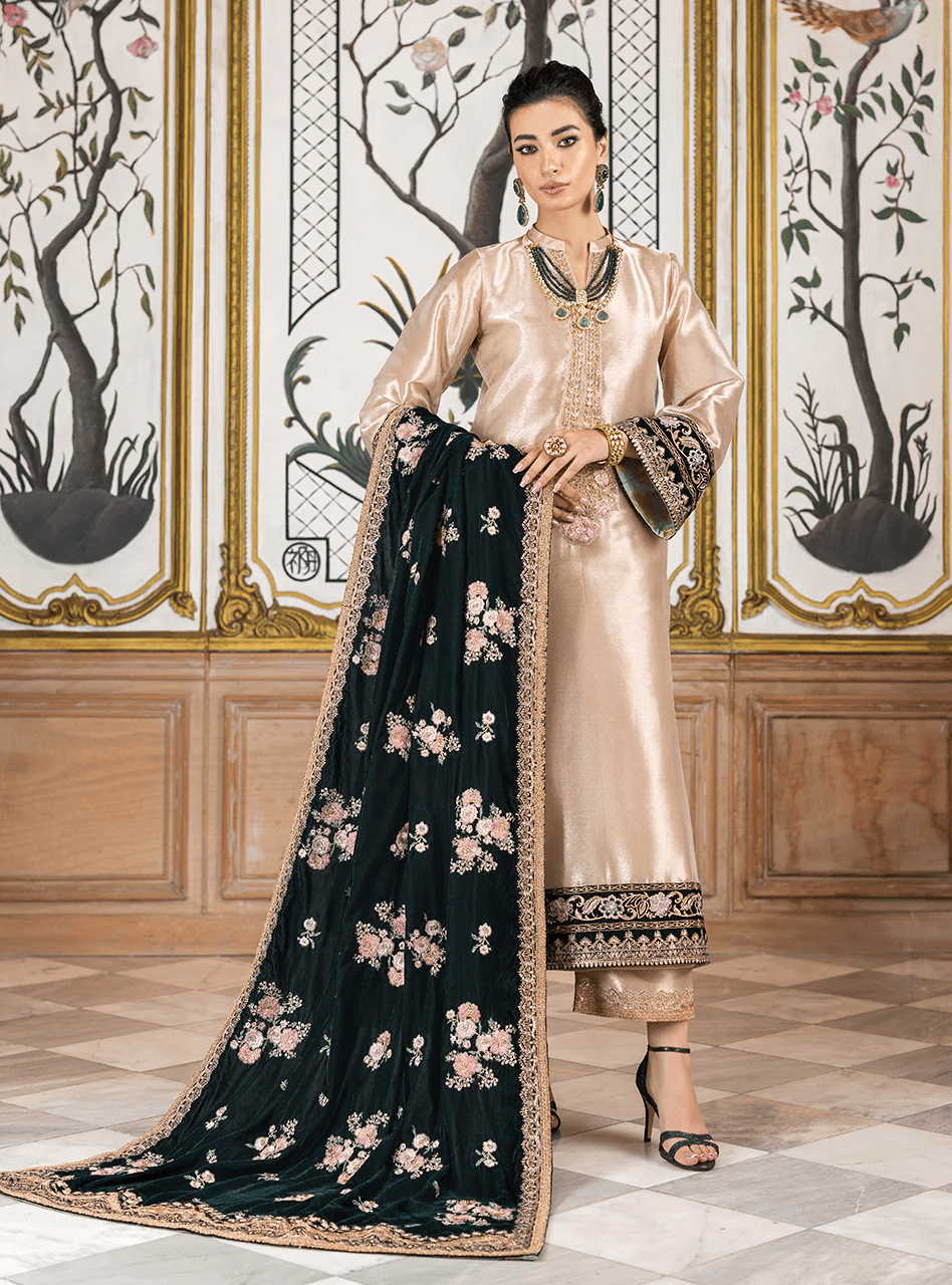 Zainab Chottani Embroidered Unstitched D-03 SARWANA With Velvet Embroidered Shawl