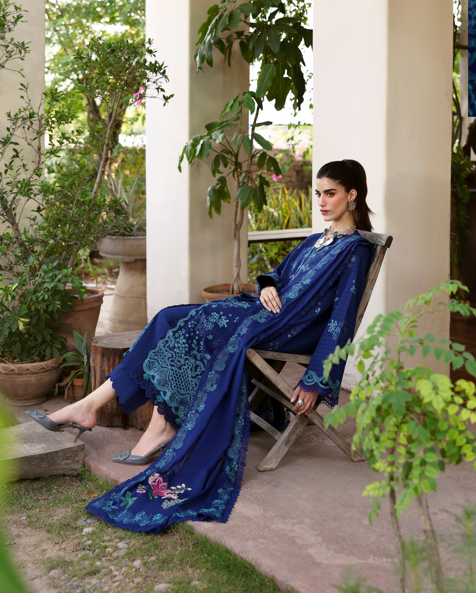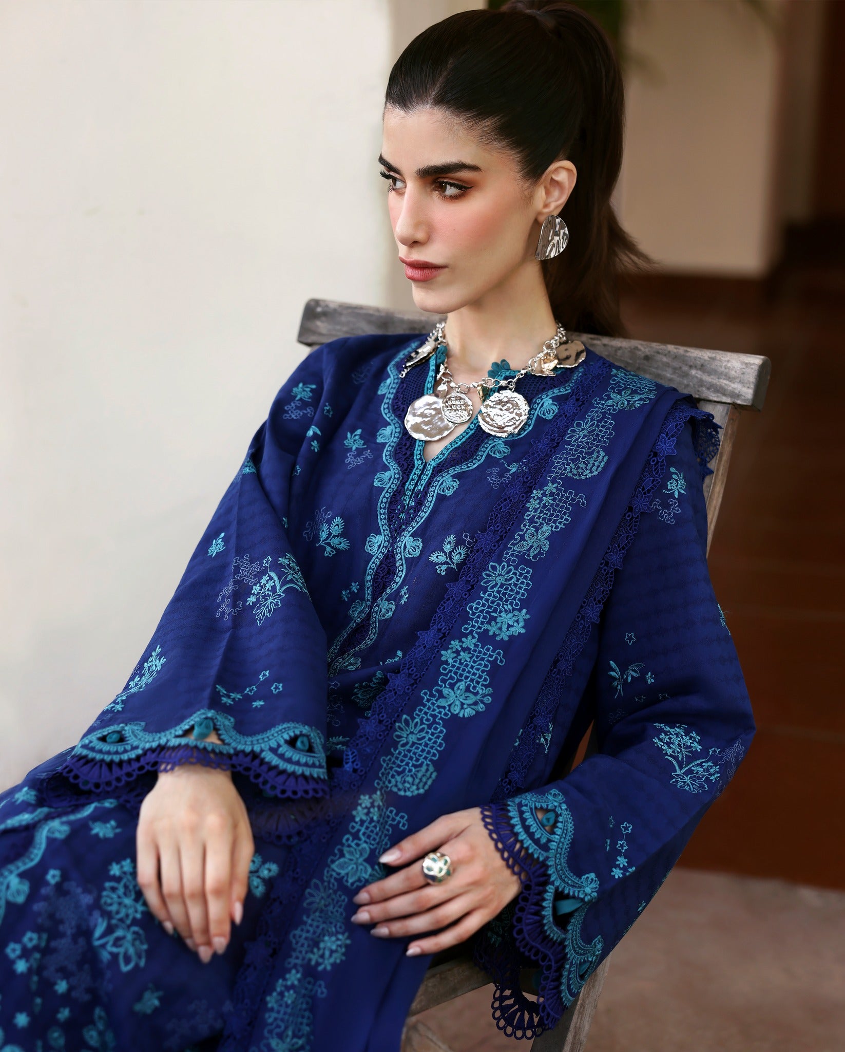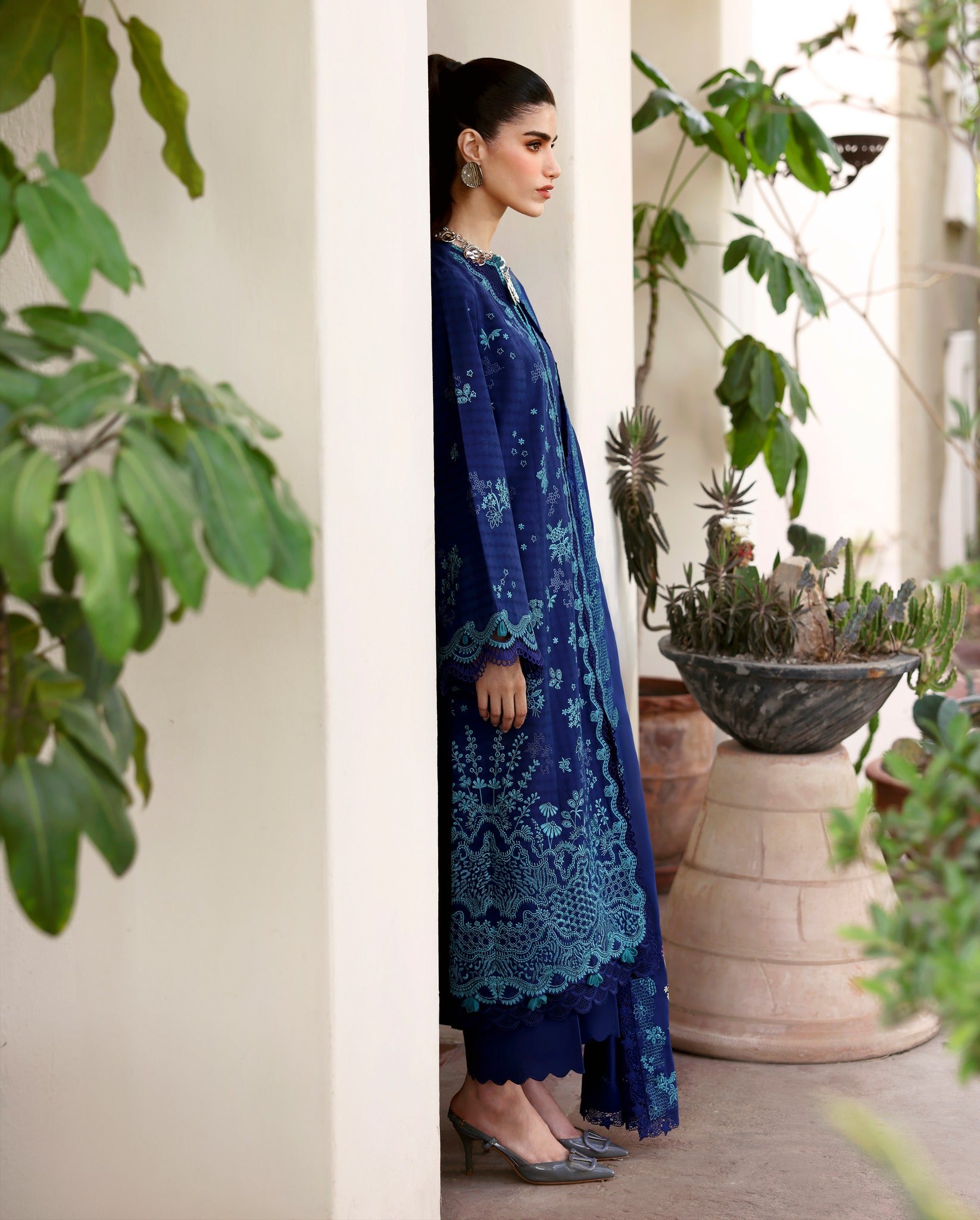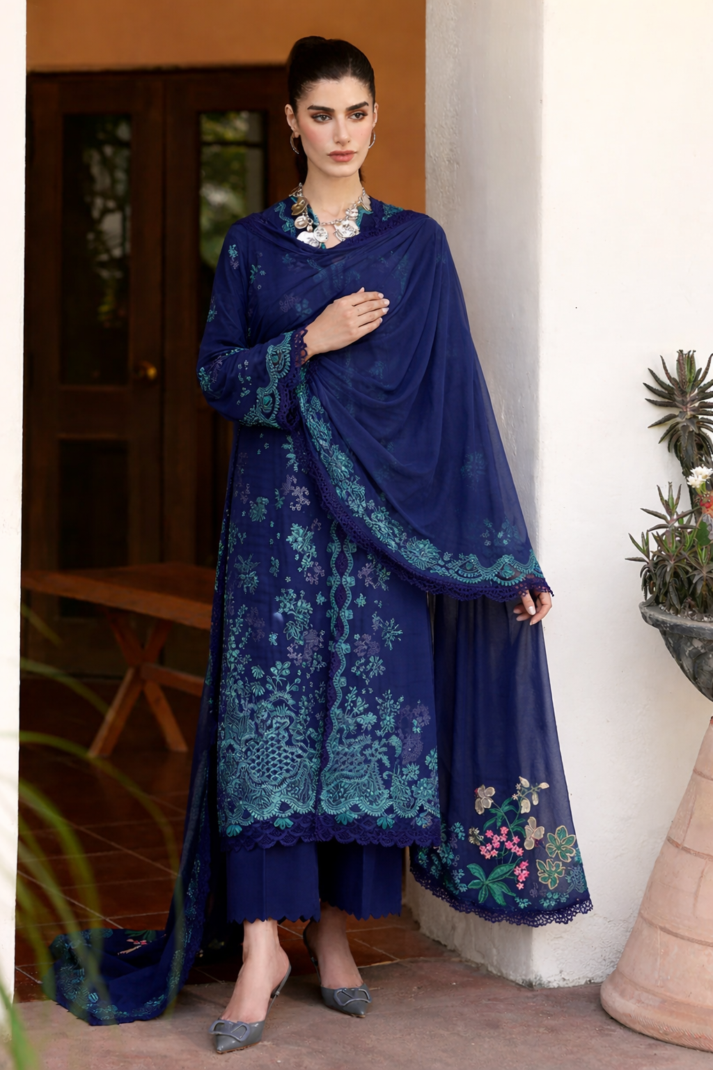 Elevate your wardrobe with this stunning Republic Womenswear luxury lawn suit in rich navy blue. Featuring intricate embroidery detailing, this unstitched ensemble offers timeless elegance and versatility. The premium lawn fabric ensures breathability and comfort, perfect for warm weather wear. Customize the fit to your preferences with professional tailoring, allowing you to create a piece that's uniquely yours. Ideal for casual gatherings, festive occasions, or everyday sophistication.