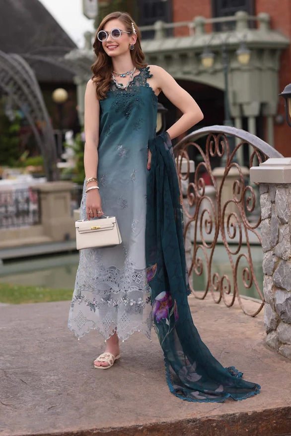 Saadia asad - Lawn Embroidered Unstitched 3 Piece - D10- Teal Ombre